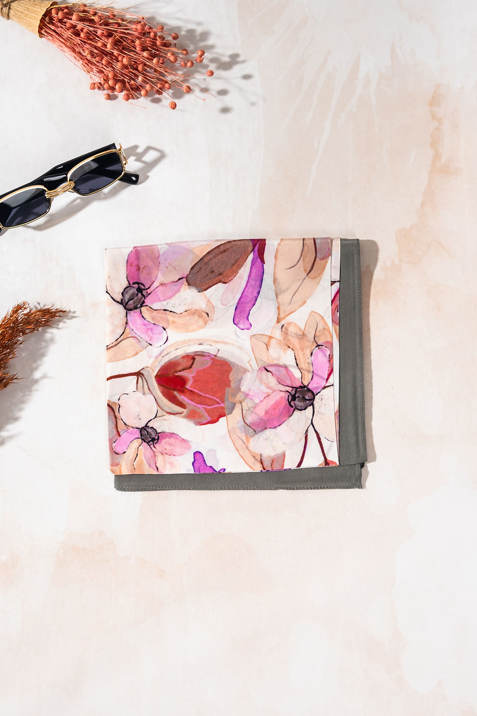 %100 Saf İpek Floral Desenli Fular – Pastel Esintisi